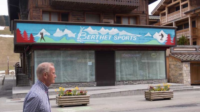 This afternoon we went down the hill to play ball and look around Les Gets. There was no one about, and more to the point, no dogs to play with. So Grey took some pictures of empty shops and building sites and we came home. Bernie is cooking him a meal tonight so I will get a quiet night in. While he is doing that, have a look around the village as it was today.
